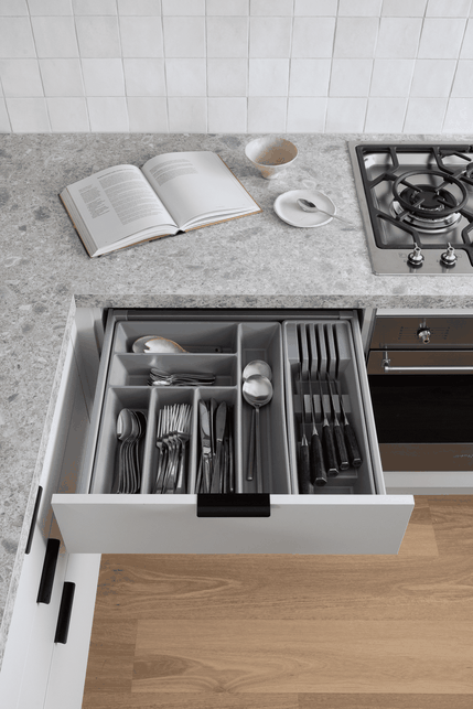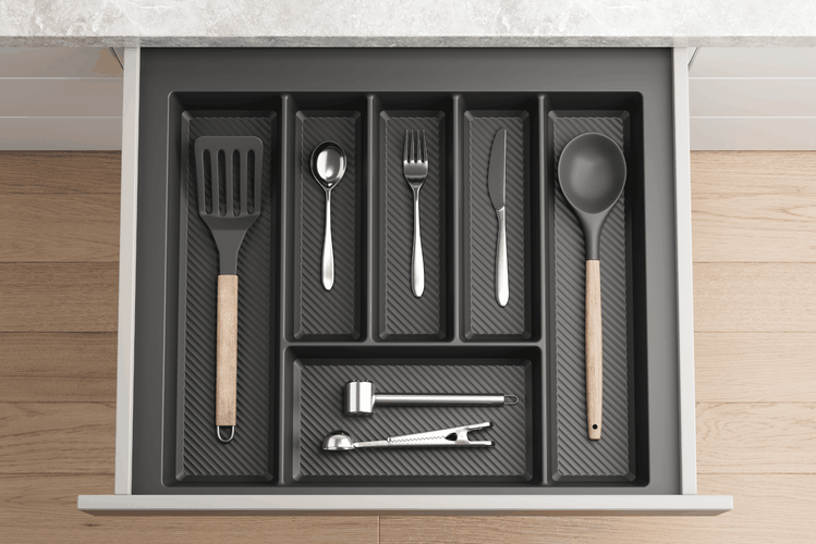 For an almost instant transformation, you can’t go past kaboodle’s range of cutlery trays and utensil inserts. Mix and match trays to suit your drawer space and give everything from teaspoons to tongs their own home. This fuss-free update makes meal prep smoother and instantly turns your kitchen into a more functional space.